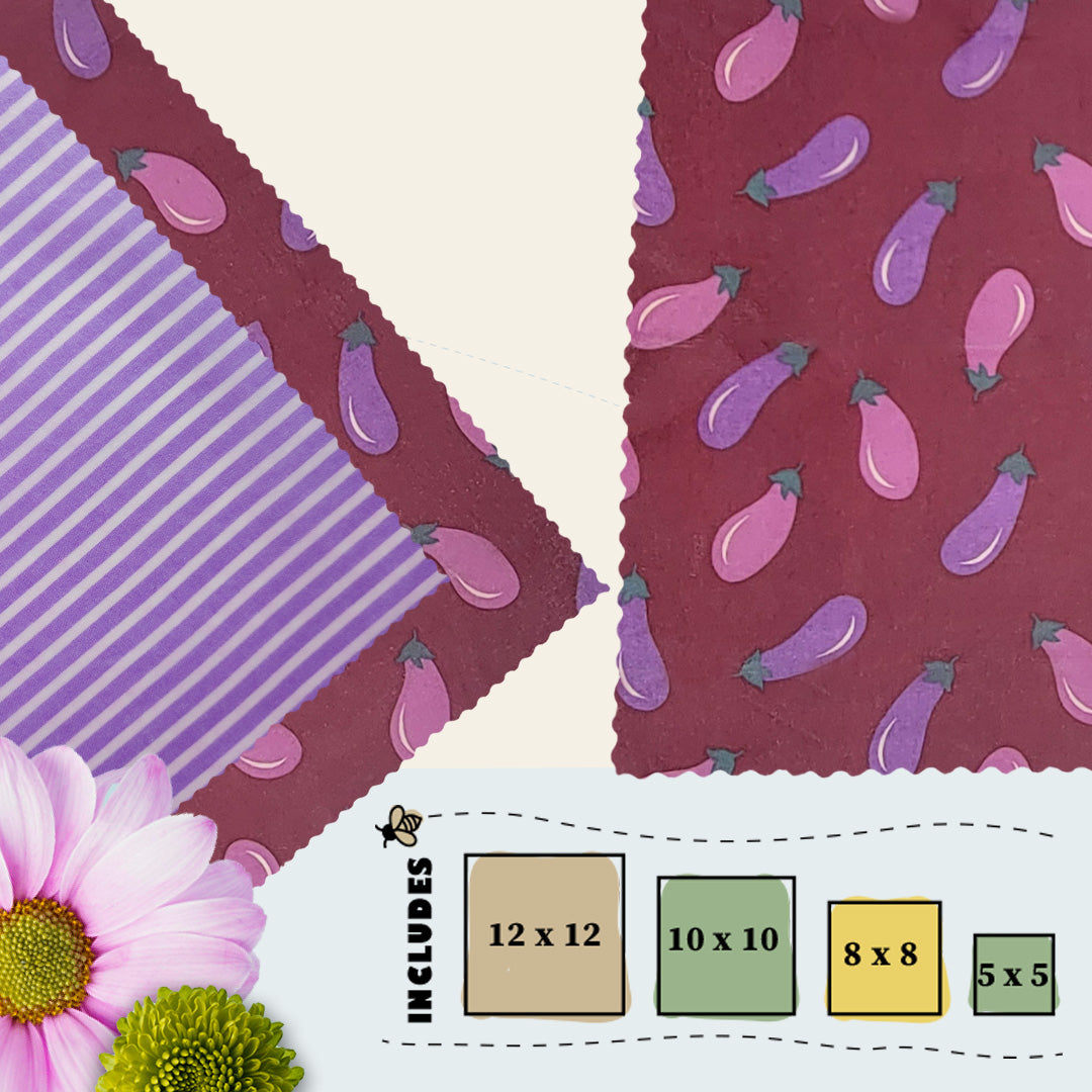 Purple Eggplant New-Bee Starter Pack – Beeswax Food Wraps (4pc Set)